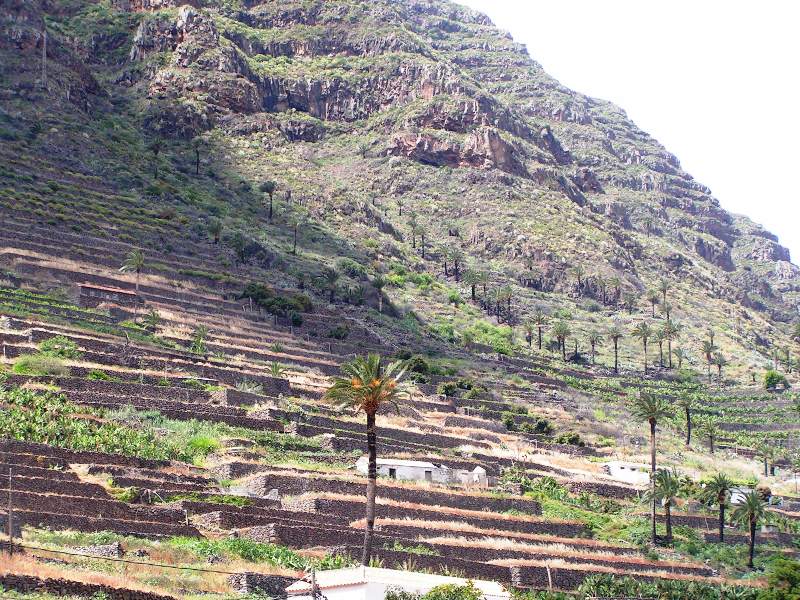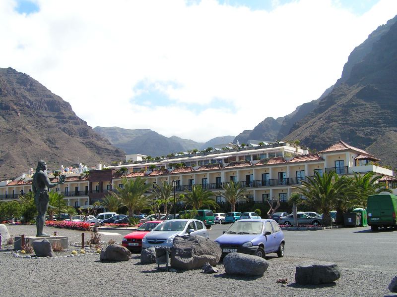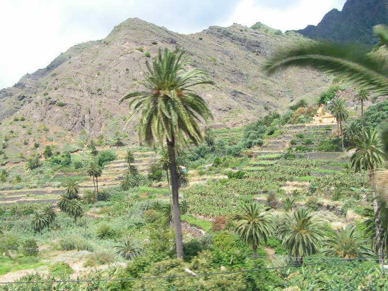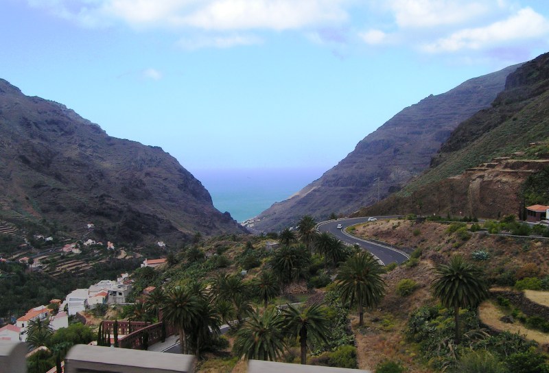 La Gomera‘da daha cok eko turizm yapiliyor, sadece bir iki yerde kücük plajlar var, burasi doga severlerin gözde bir adası,... Yollar cok virajli ama gıcır gıcır asfalt, hepsi de AB fonlariyla yapılmış. Adanın orta bölgeleri ormanlarla kapli Garajonay Milli Parki, burada cok cesit bitki örtüsü bulunuyor. Diger yerler kuru, gözümün alışık olmadığı bir manzaraydi, bana cok etkileyici geldi. Aslinda kuru bir dogal bitki örtüsü mevcut ama sonra bir anda vahadaki gibi bir palmiye kümesi cikiveriyor karsiniza. Bazi yerlerde de daglarin üstü bile palmiyelerle kapliydi. Hele hele adanin bati kiyisindaki Valle Gran Rey bölgesine ulasinca, vadinin icinden gecerek cok ilginc bir sahil kasabasina geliniyor ki harika bir yerdi. Burada kücük oteller de mevcut.