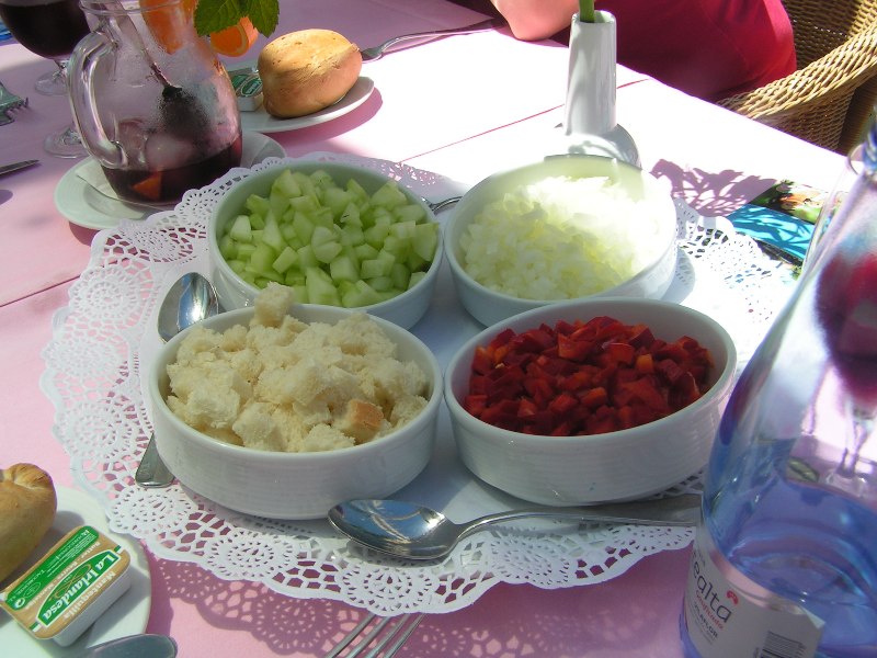 Yemekler konusuna deginecek olursak, tüm Ispanya‘da oldugu gibi burada da yemekler beni cezbetmedi. Paella denen büyük tavalarda yapilan, sebzeli, etli, karidesli pilavlari en meshur yemekleri. Gazpacho denilen soguk icilen domates corbalari da meshur ama o da beni kesmedi, soguk domates suyu gibi bisey. Ama kücük, firinda pisirdikleri patatesleri güzel, bunu iki farkli sosla yiyorlar, soslar kirmizi ve yesil, isimleri Mojo Picon ve Mojo Rojo.Tavsiye ederim.